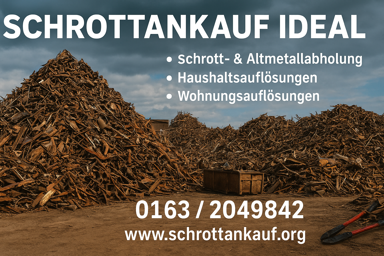 Vertrauen Sie auf Erfahrung, faire Preise und schnellen Service in Unna und Umgebung. Stellen Sie sich vor, Sie könnten all den alten Schrott, der seit Jahren Platz wegnimmt, einfach loswerden – und dabei auch noch gutes Geld verdienen. Genau das machen wir beim Schrottankauf Unna möglich! Unser Team verwandelt scheinbar wertloses Altmetall in bare Münze und sorgt dafür, dass alles umweltgerecht wiederverwertet wird. Wir holen Ihren Schrott direkt bei Ihnen ab – schnell, freundlich und selbstverständlich kostenlos. Ob alte Heizkörper, Kupferkabel, Maschinen oder Elektroschrott: Was für Sie nur Ballast ist, ist für uns ein wertvoller Rohstoff. Jeder Abholtermin wird individuell geplant, damit Sie sich um nichts kümmern müssen. Mit jahrelanger Erfahrung, modernen Fahrzeugen und einem Lächeln auf den Lippen sorgen wir für einen reibungslosen Ablauf. Dabei sind unsere Preise immer fair und transparent – ohne versteckte Gebühren und ohne langen Papierkram. Geben Sie Ihrem Schrott eine zweite Chance und lassen Sie uns gemeinsam etwas Gutes für die Umwelt tun. Schrottankauf Ideal Unna – weil Entsorgen auch Freude machen kann!